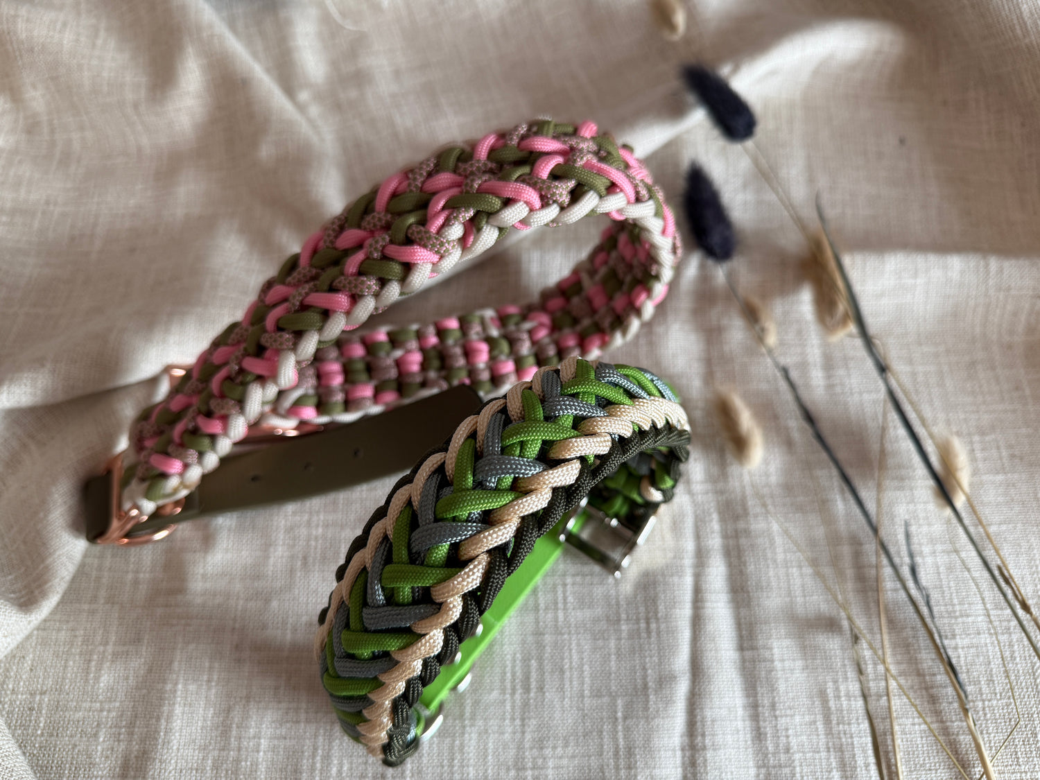 Unsere Paracord-Halsbänder verbinden Stabilität mit schöner Optik. Jedes Halsband ist handgeknüpft, robust und angenehm zu tragen – perfekt für den Alltag mit deinem Hund. Alle Modelle sind Einzelstücke.